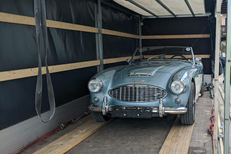 Deutschland Transporte 6 Pötte für den Pott – Austin Healey per Einzeltransport 16. Dezember 2022 Landverkehr. Von Bayern nach Nordrhein-Westfalen.