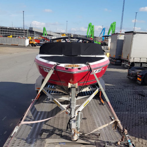 Ein Transport per Container wäre zwar auch möglich gewesen, dafür hätte der Container aber erst auf die Seite gelegt und beladen werden müssen, um ihn anschließend wieder aufrecht zu stellen. Für die Entladung aus dem Container in Bremerhaven, wäre der Container ebenfalls wieder gekippt worden. Wir raten unseren Kunden, Boote, wenn sie nicht gut in den Container passen, lieber per RORO* zu versenden, um Schäden an Trailer und Boot zu vermeiden.