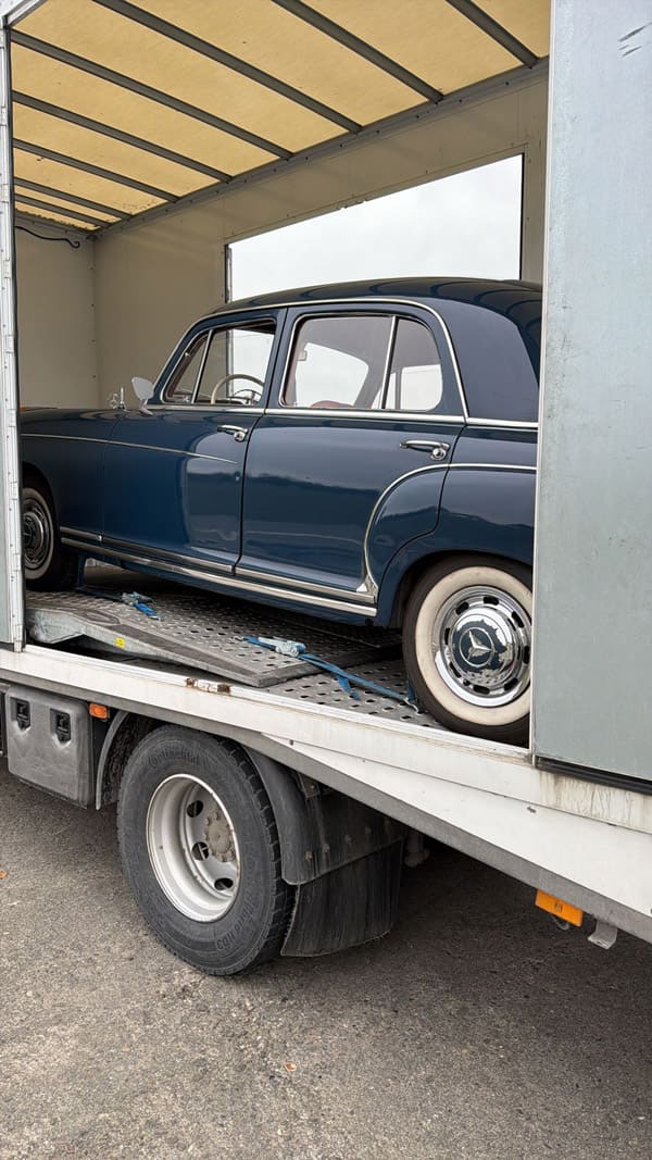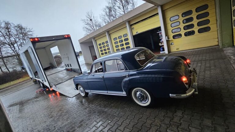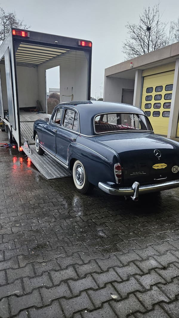 Ein Klassiker mit Geschichte: Für unseren Kunden durften wir einen Mercedes-Benz 220 S aus dem Jahr 1959 sicher von der Schweiz nach Deutschland überführen.